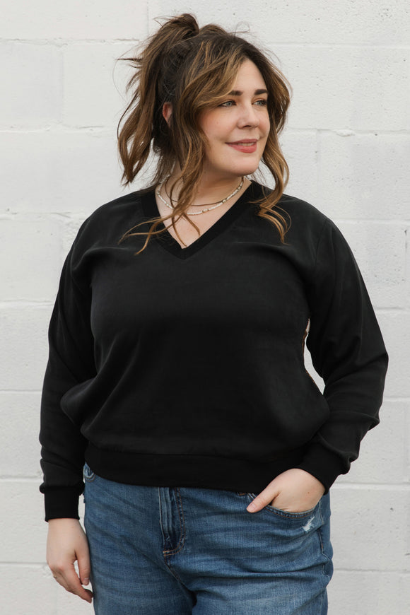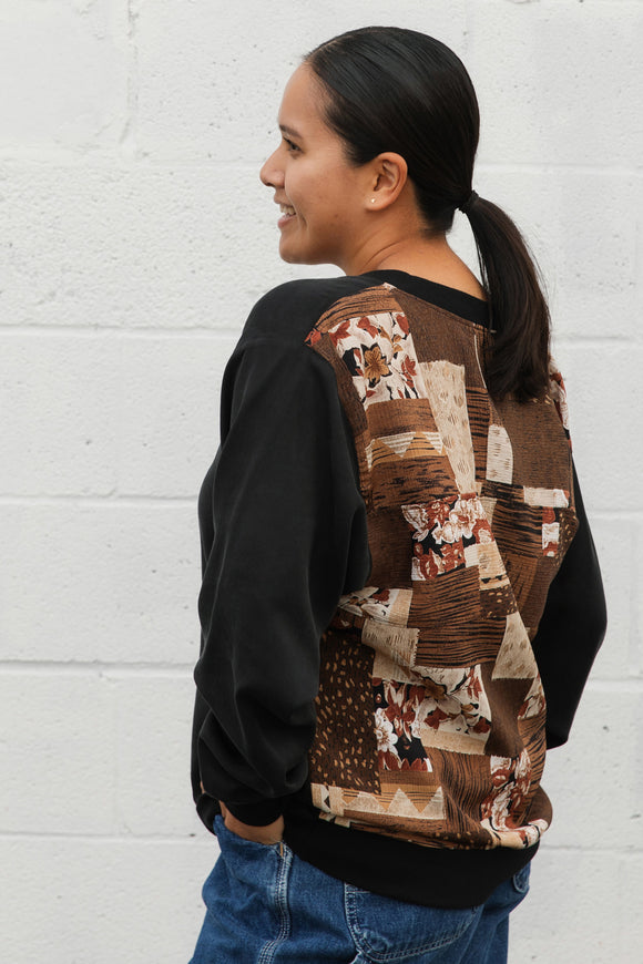 {Brown Abstract} Bomber Blouse | V-neck & Pockets {size small}