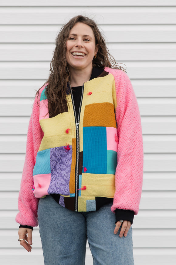 {Colouful Quilt} Upcycled Bomber Jacket {small}