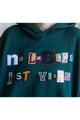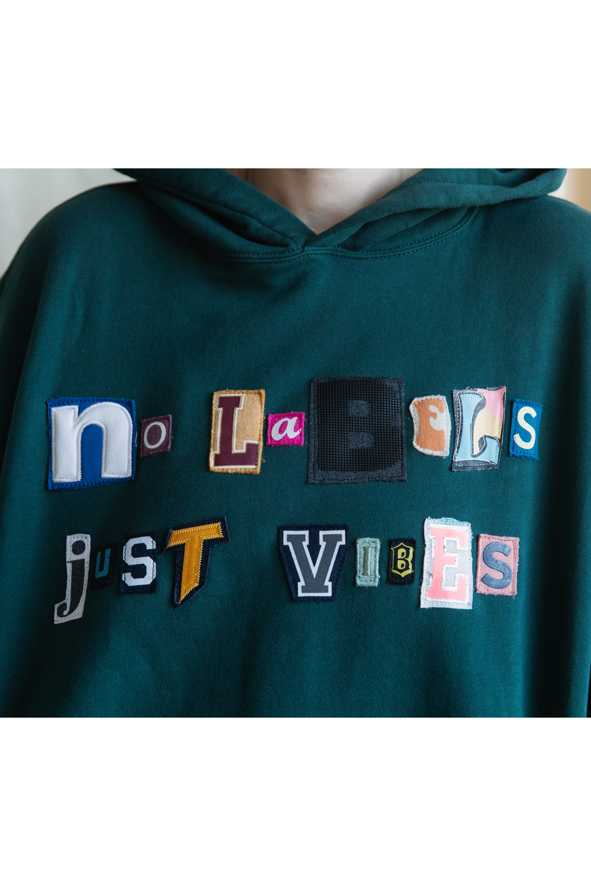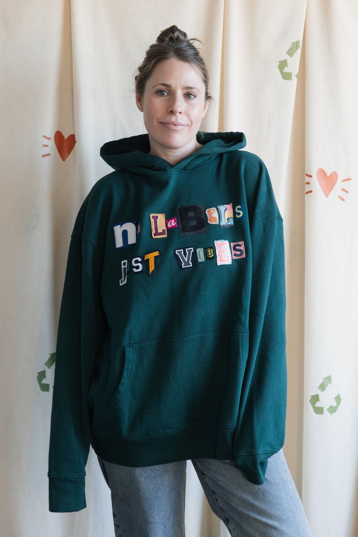 this sweater needed some charactered added to it. What is better than the THREADED logo displayed with letters saved from unwanted logos, what a full circle moment for this upcycled sweater.