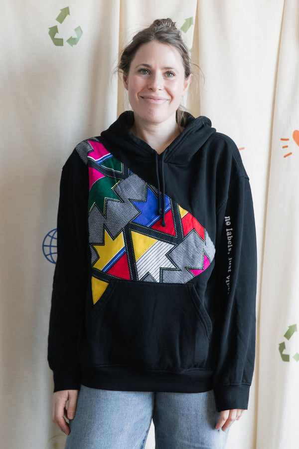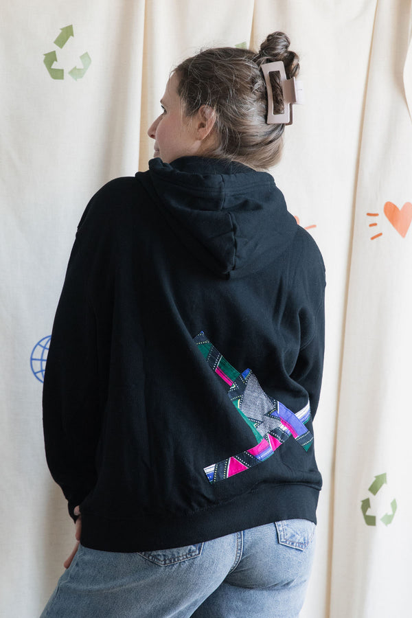this classic black hoodie had some stains and needed a total refresh. I pulled this dope 90's graphic off a t-shirt to give this hoodie the upgrade it needed!