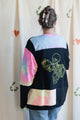 pink tie dyed patchwork sweater with beer drinking skeleton {large}