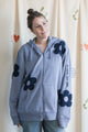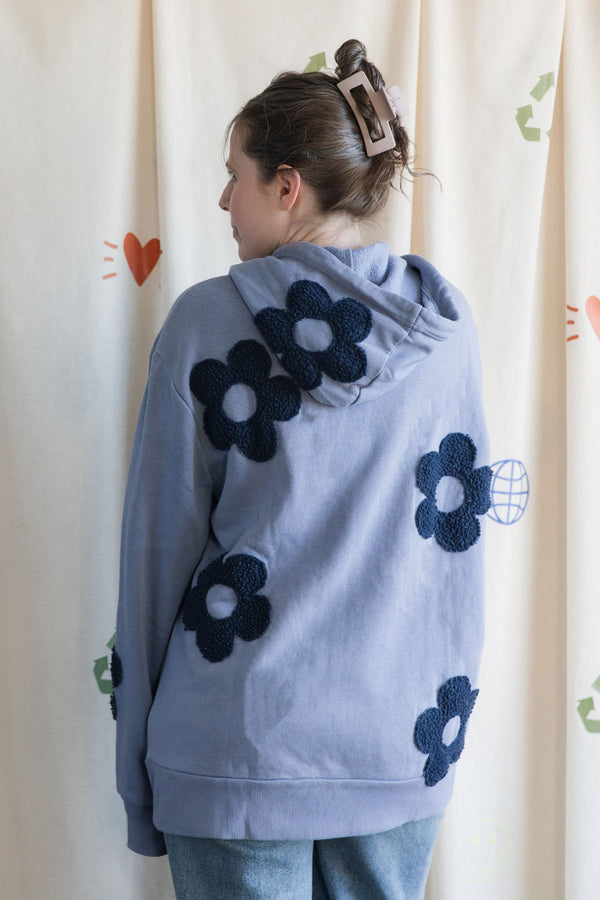 this cozy periwinkle zip up hoodie is classic, but with a colourful & floral twist!