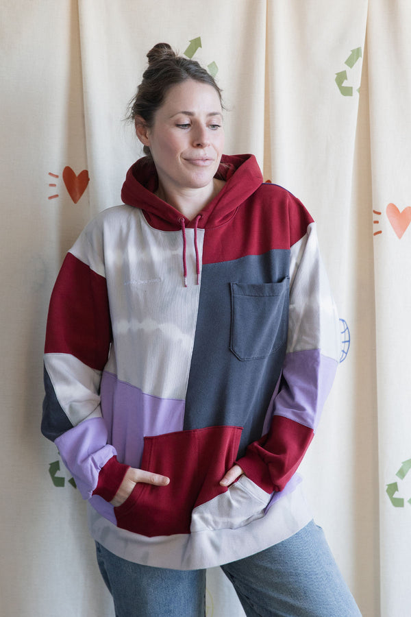 upcycled purple, red, grey & tie dyed hoodie {medium}