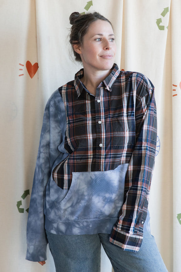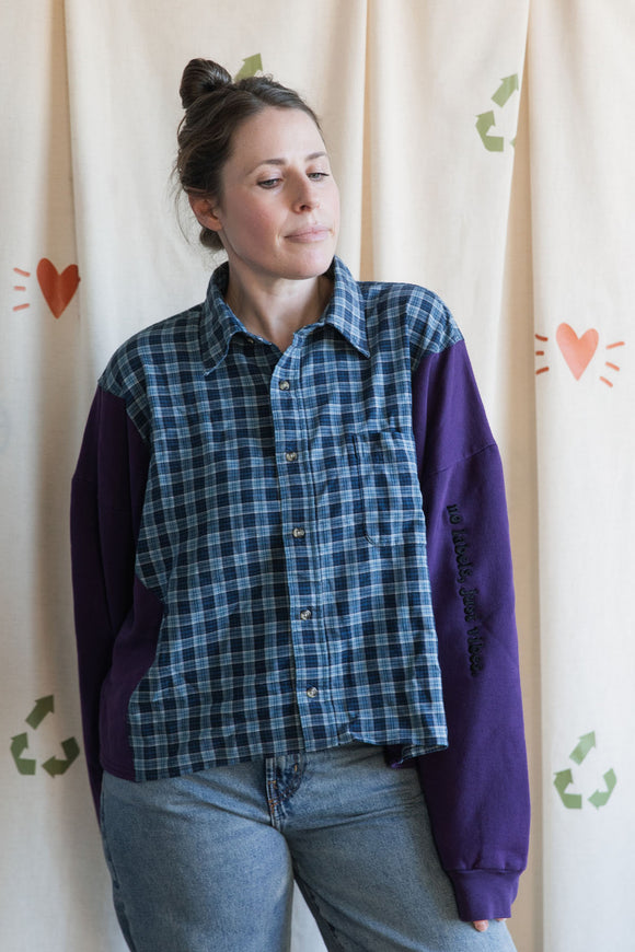 blue plaid shirt with purple sleeves {large}
