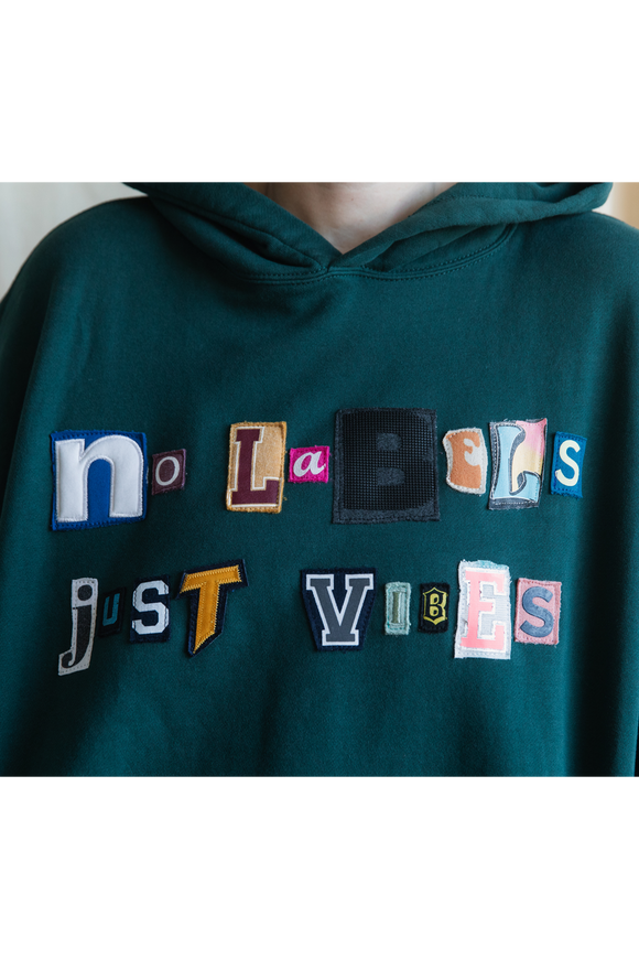 green 'no labels, just vibes.' hoodie {xx-large}