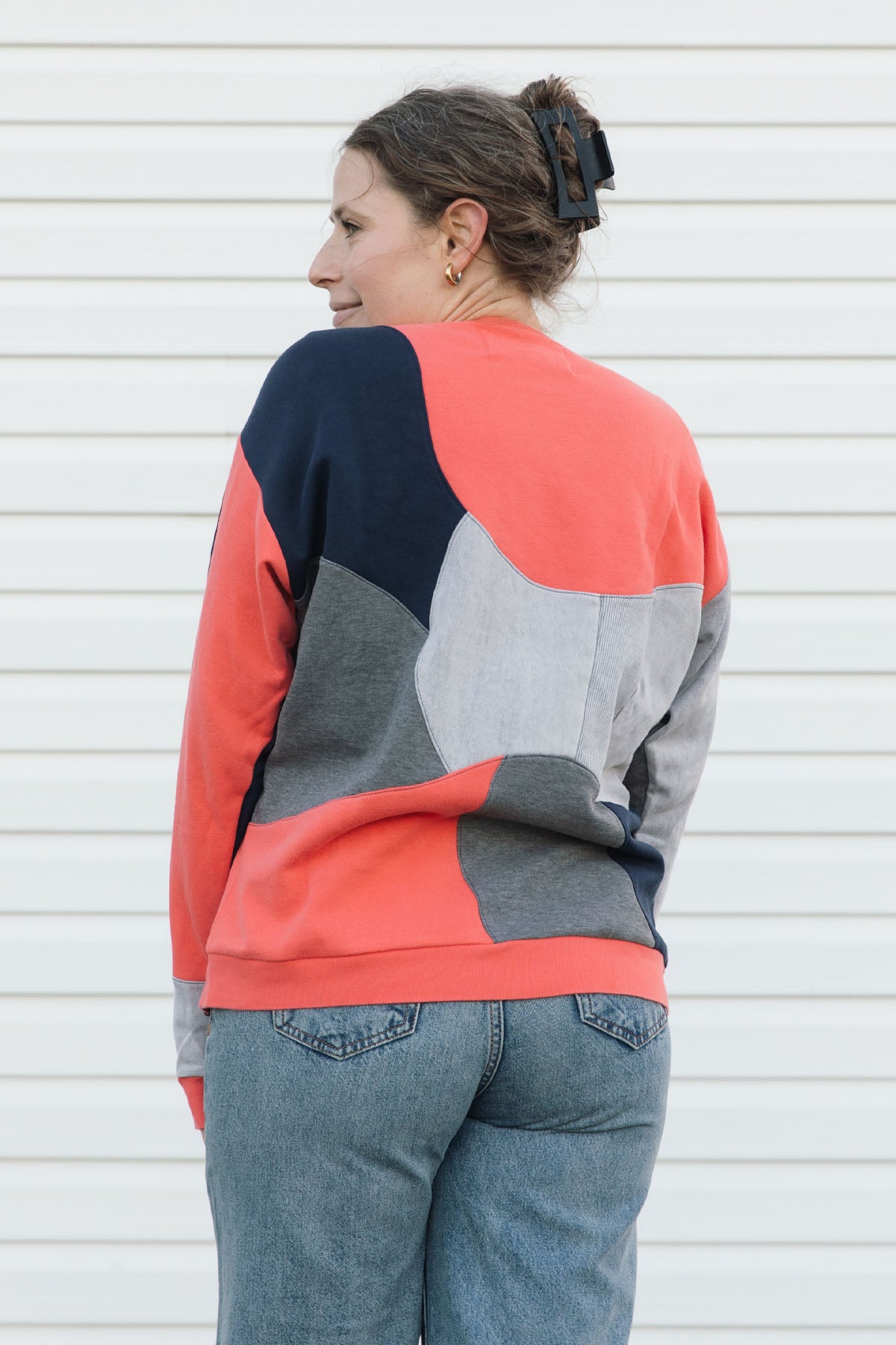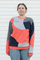 grey, coral & navy patchwork sweater {small}