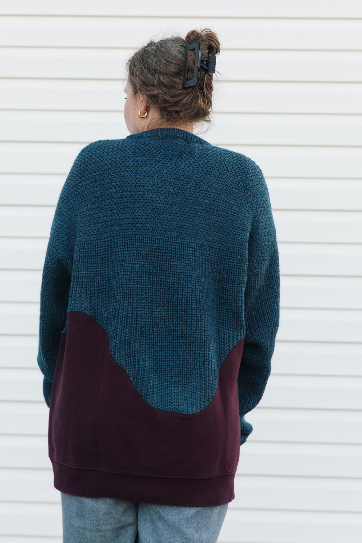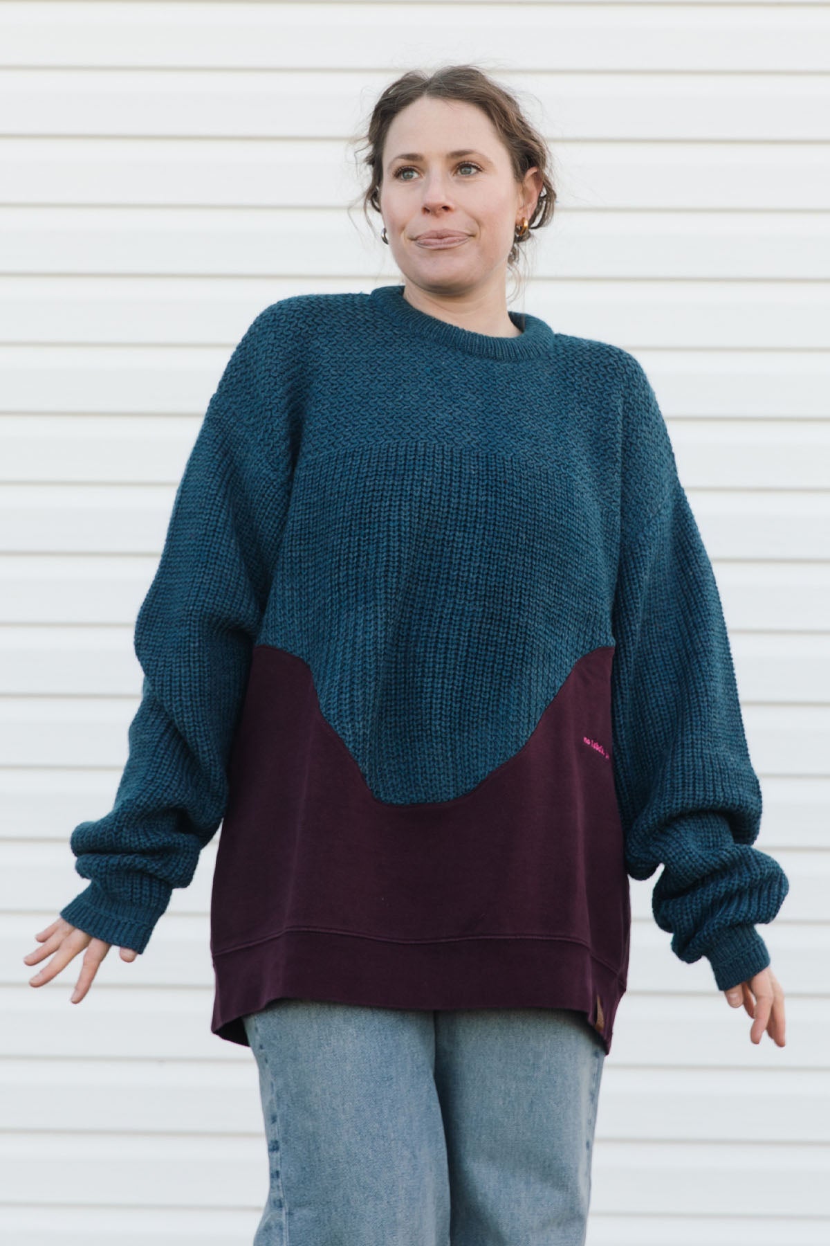 i love mixing two sweaters together, it is my favourite way to elevate both. Both of these were plain, both had some damage on the front and mashing them up together let a new sweater be created!