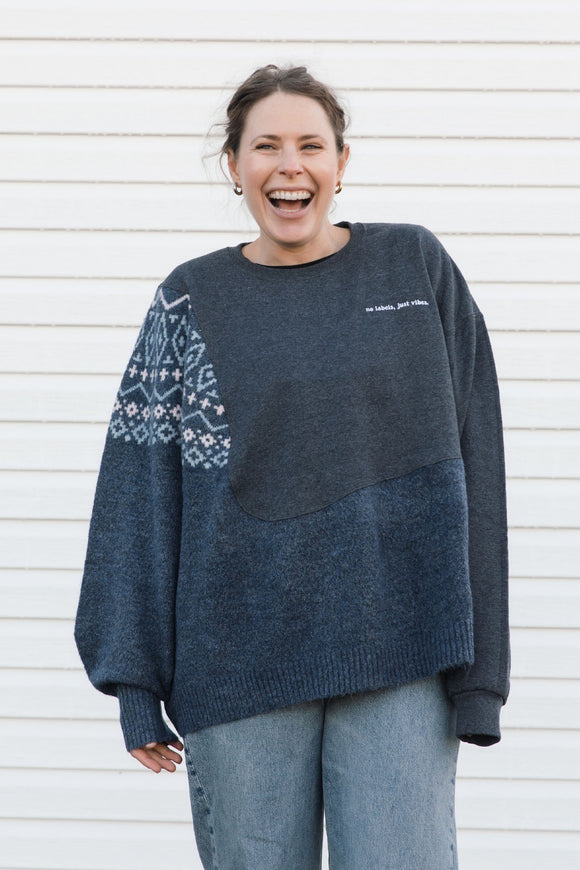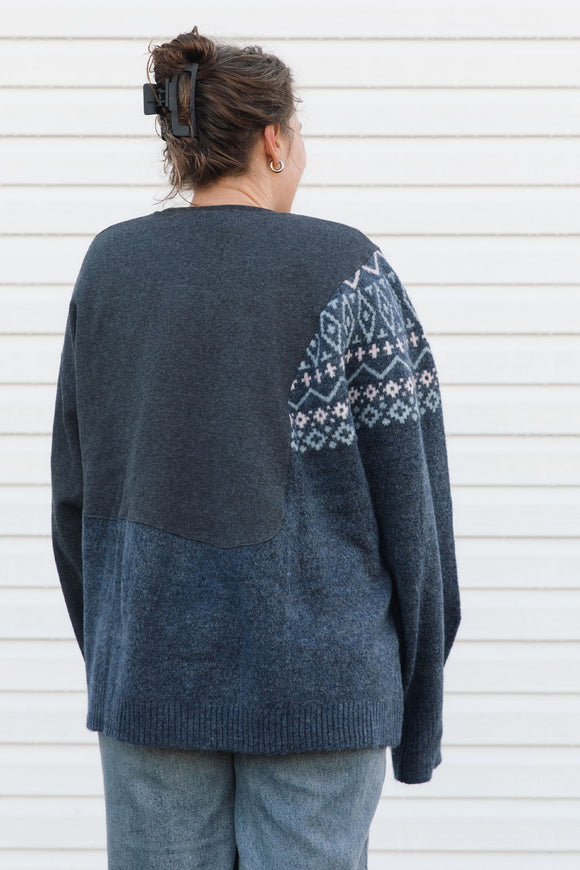 upcycled grey and blue cozy knit {x-large}
