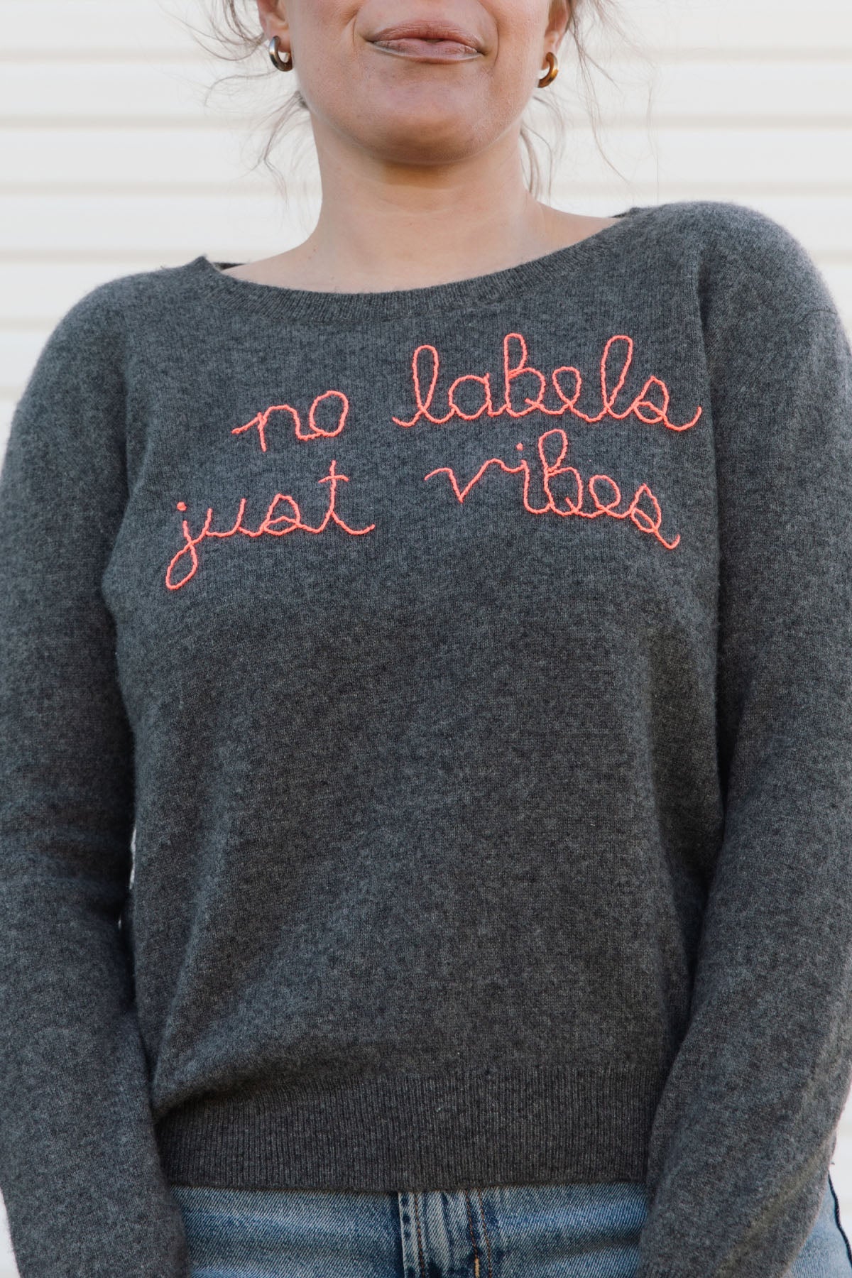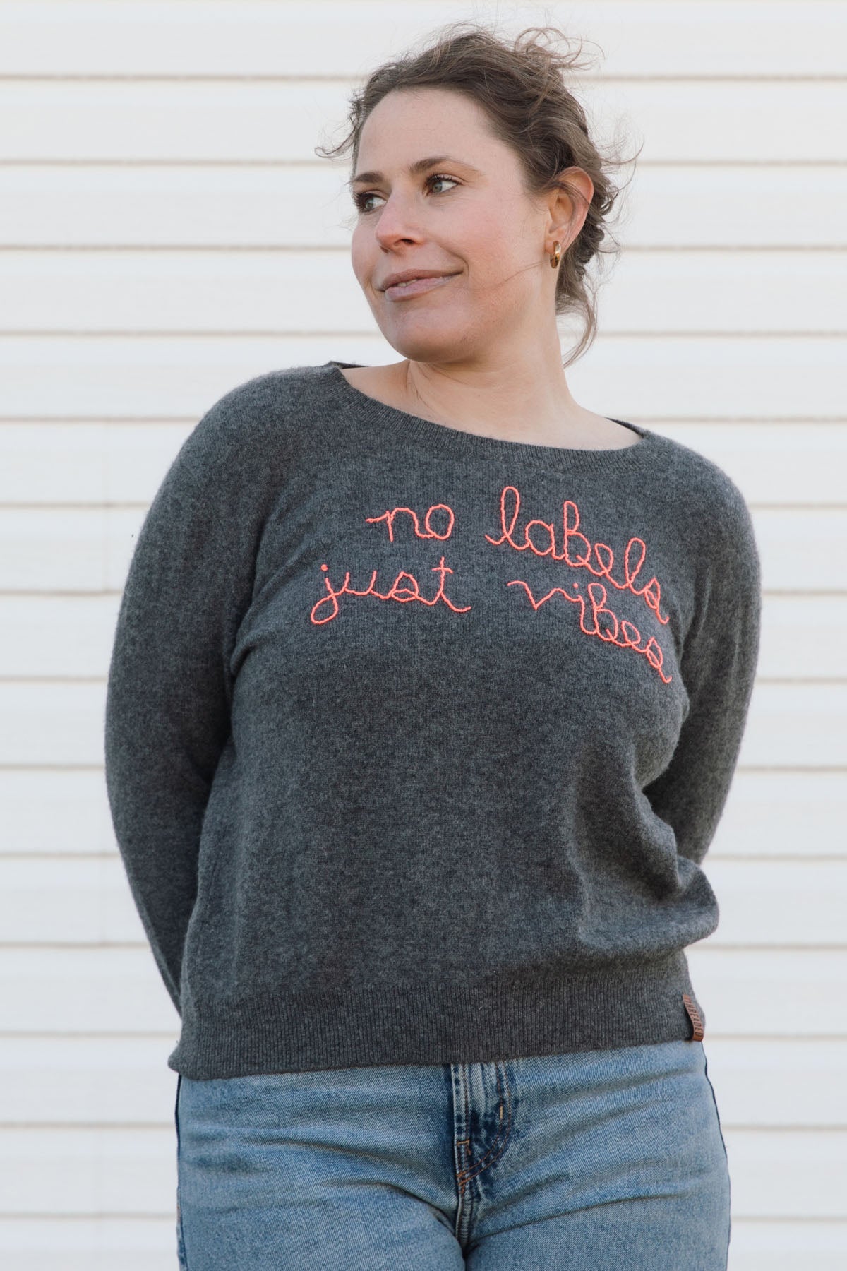 grey cashmere 'no labels, just vibes.' sweater {small}
