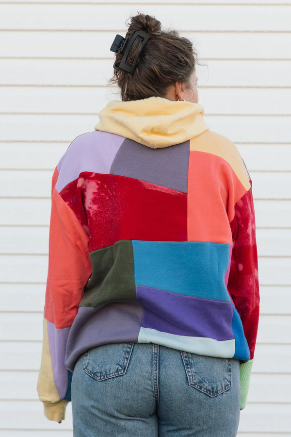 this style of sweater is lovingly referred to as a 'scrap baby.' Each is one-of-a-kind and sort of has its own personality. They are made from the scraps I create throughout this collection, and show off the power circular fashion has. By using this fabric instead of seeing it as garbage, a magical sweater was created. I can't wait to see which magical person gets her!