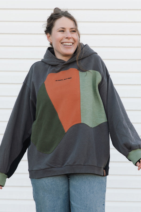 grey upcycled hoodie with colourful details {x-large}